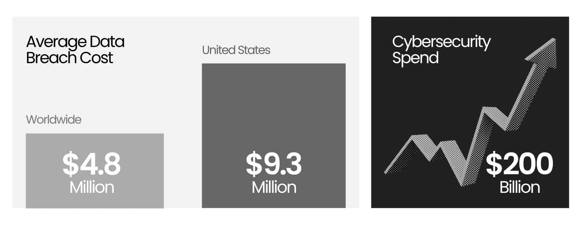 Cybersecurity spending is at an all-time high. It’s projected to exceed $200 billion annually1…yet the attacks keep getting worse. The average data breach now costs $4.88 million globally, and over $9.3 million in the U.S.2, with both figures continuing to rise. Why? Because the industry has become dependent on a flawed economic model that rewards complexity and liability transfer over actual preventative security.
